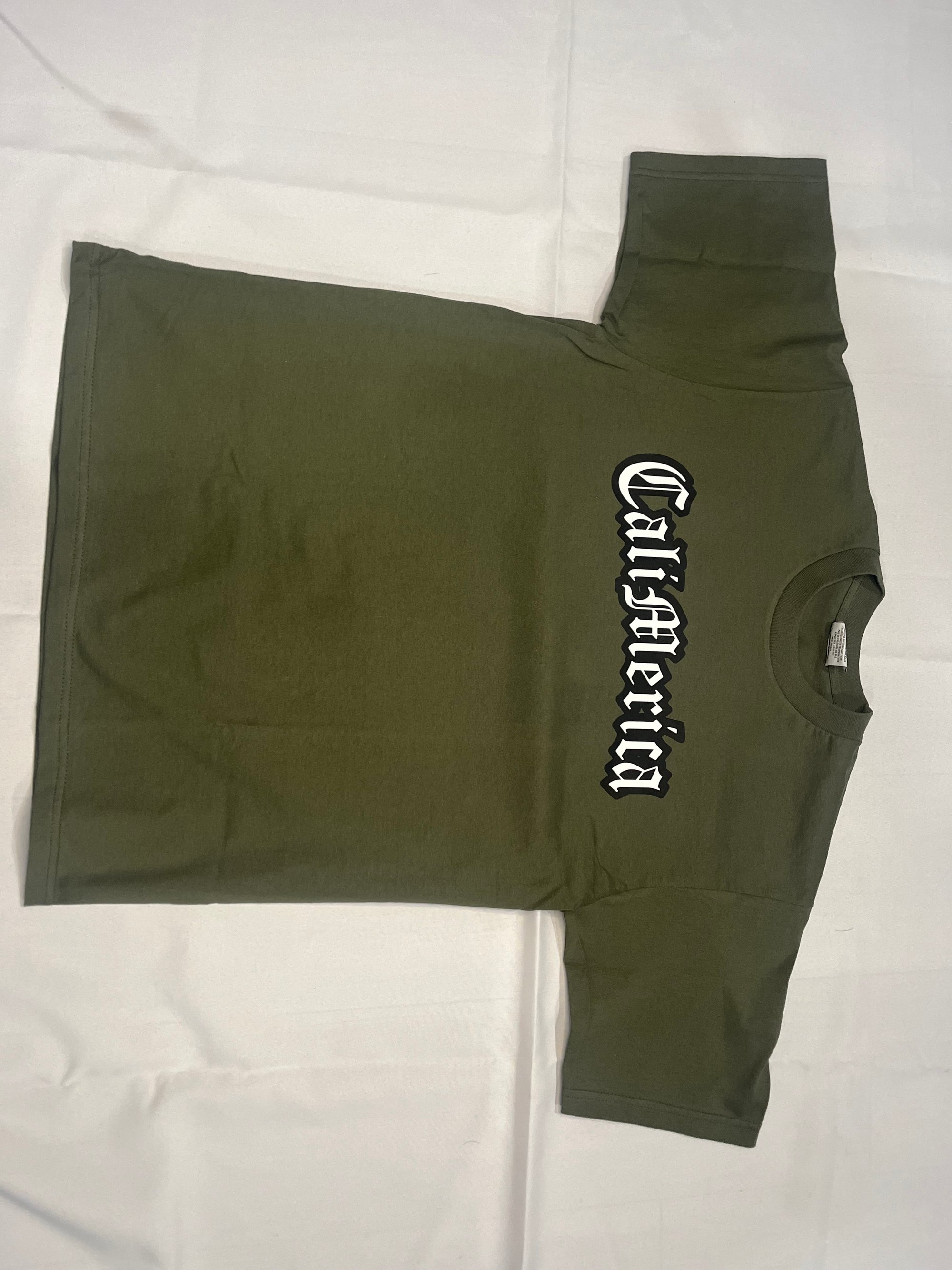 CaliMerica™ Olive Green Tee – Black/White Vinyl